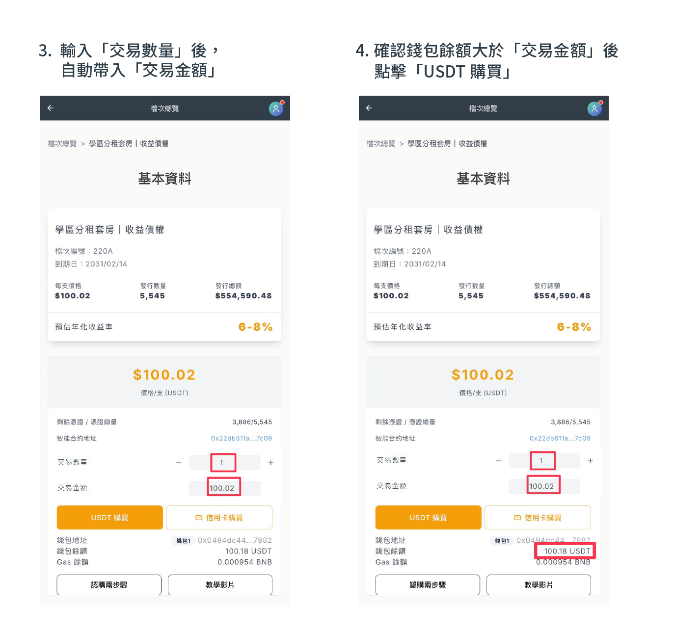本篇操作教學將說明如何以 USDT 購買 Spark Lands 不動產專案收益債權憑證。請按照以下步驟進行,以確保交易順利完成。