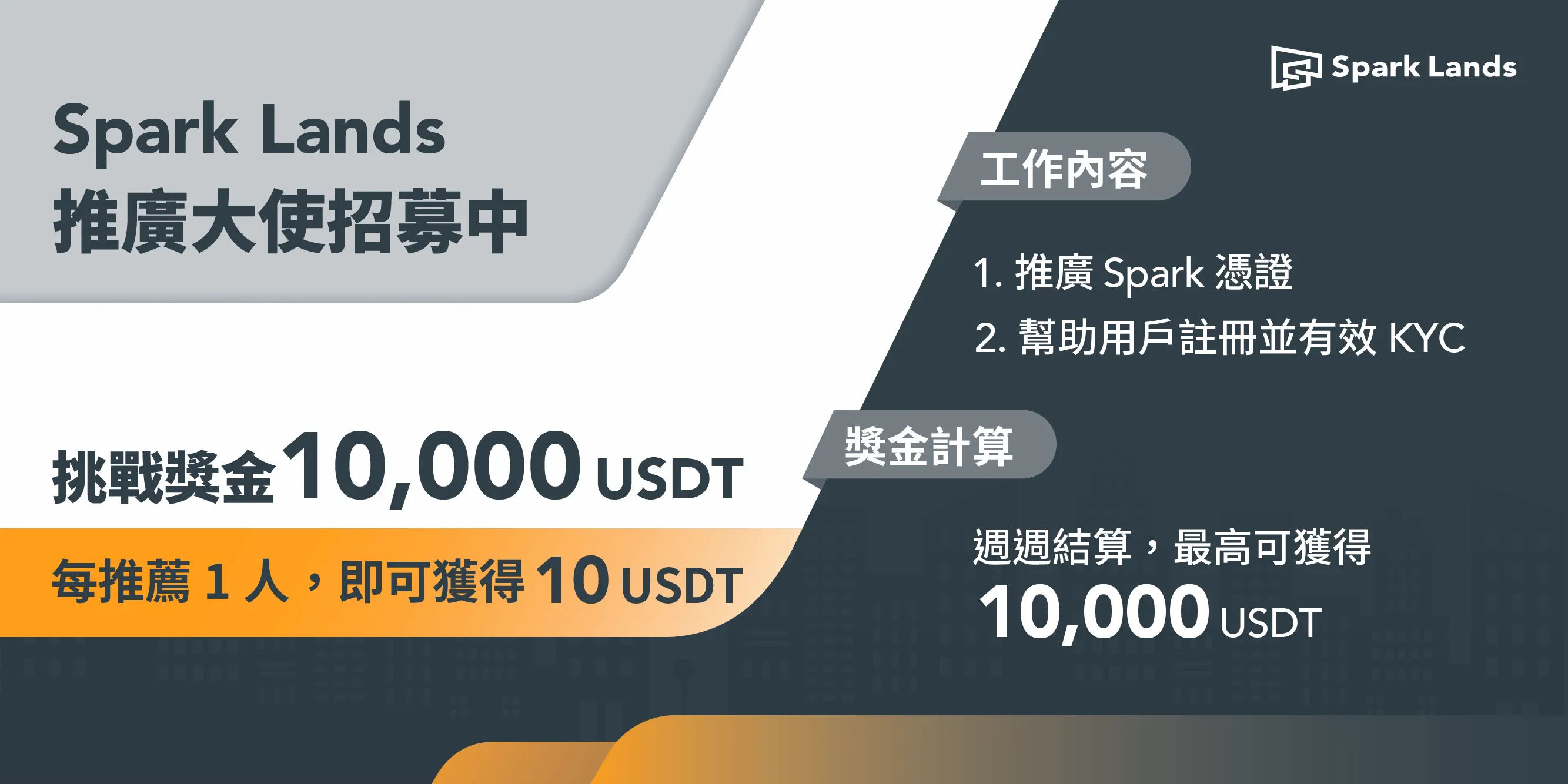 那你千萬不能錯過這次機會!成為 Spark Lands 推廣大使的你不但讓你能參與最新趨勢、累積實務經驗,還有機會跟業內人士交流,帶你強化自己軟硬實力,最重要的是能獲得高額激勵獎金!