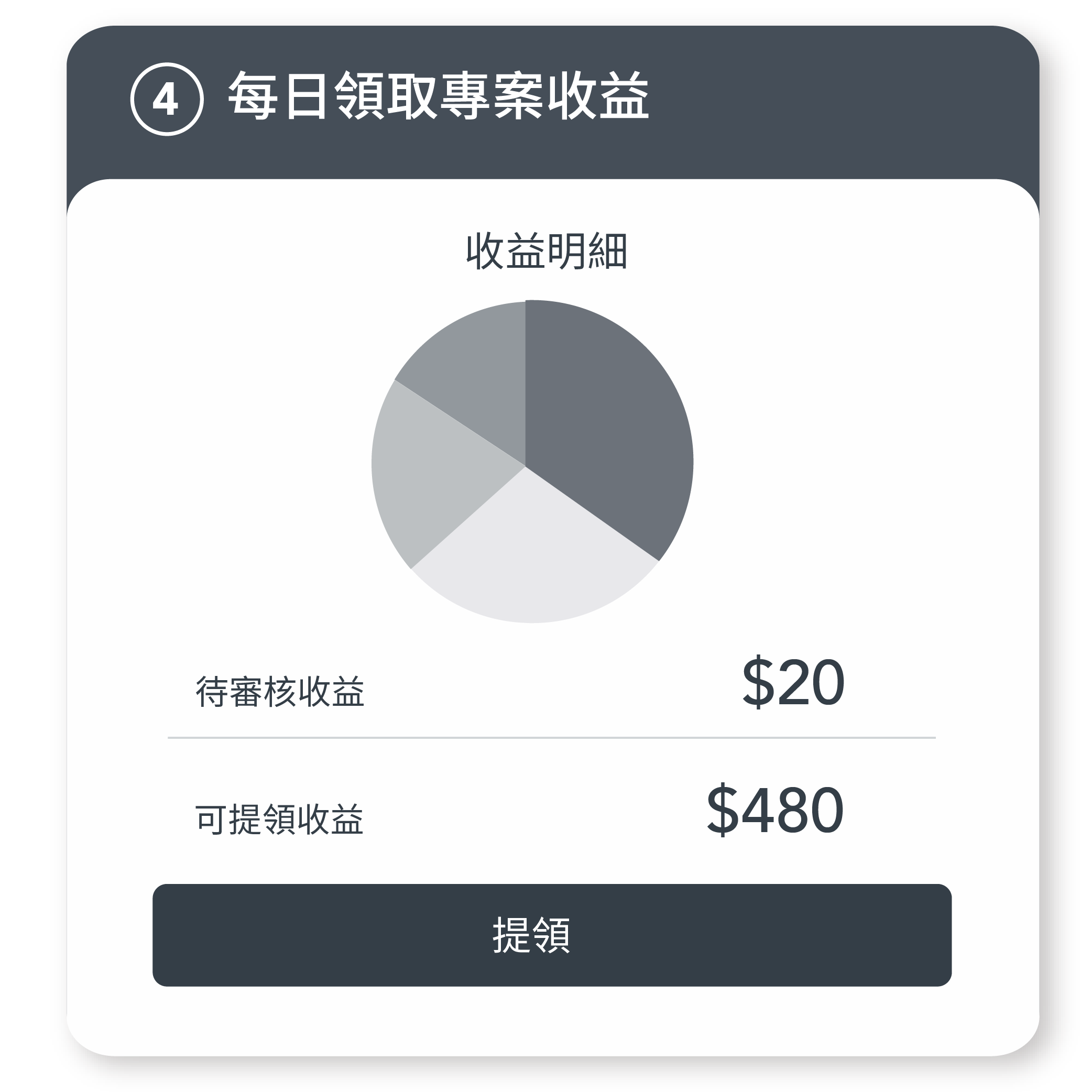 不動產收益每日按照比例精準分配與認購人,立即共享收益。